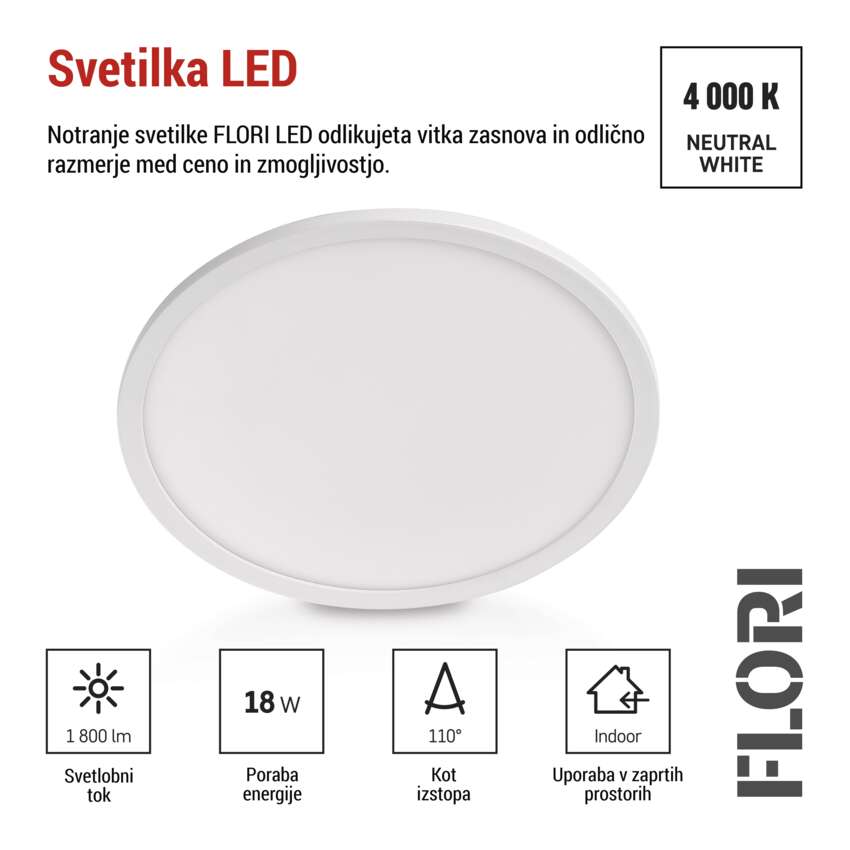 LED svetilo nadometno FLORI okrogla, bela, 18W, nevtralna bela