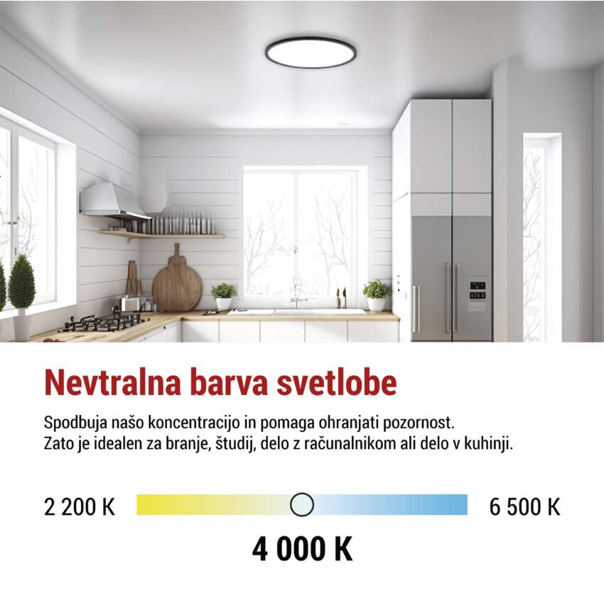 LED svetilo nadometno FLORI okrogla, črna, 22W, nevtralna bela