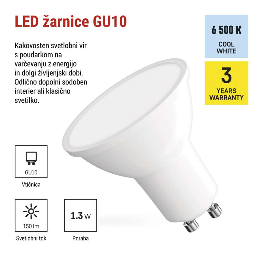 | vznožek (pritrditev žarnice) | GU10 |