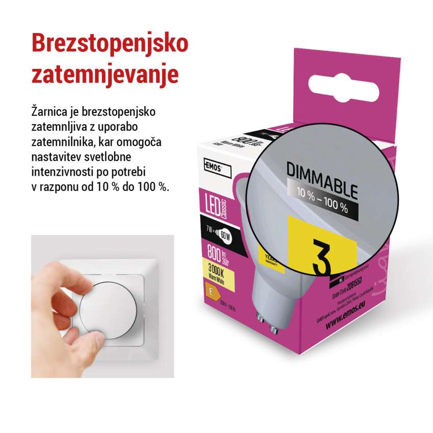 LED žarnica Classic MR16 / GU10 / 7 W (60 W) / 800 lm / toplo bela / zatemnilna