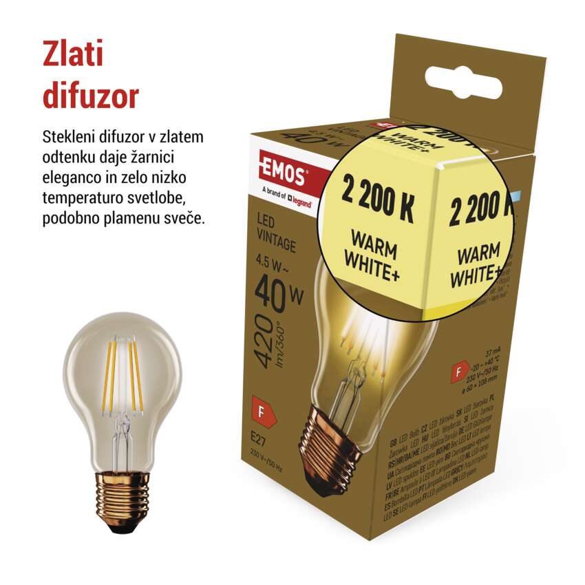 LED žarnica Vintage A60 / E27 / 4,5 W (40 W) / 420 lm / Toplo bel