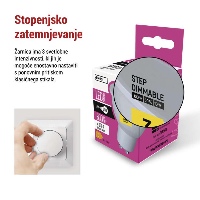 LED žarnica zatemnitev Classic MR16 / GU10 / 7 W (60 W) / 800 lm / nevtralno bela