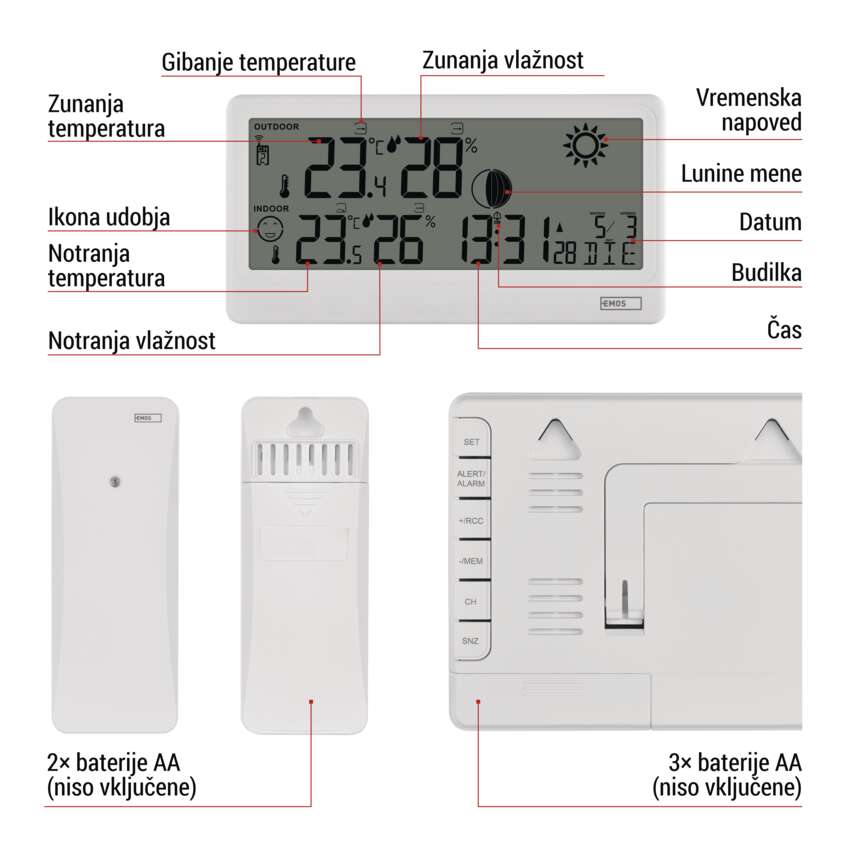| napajanje postaje | 3× 1,5 V AA (ni priloženo) |