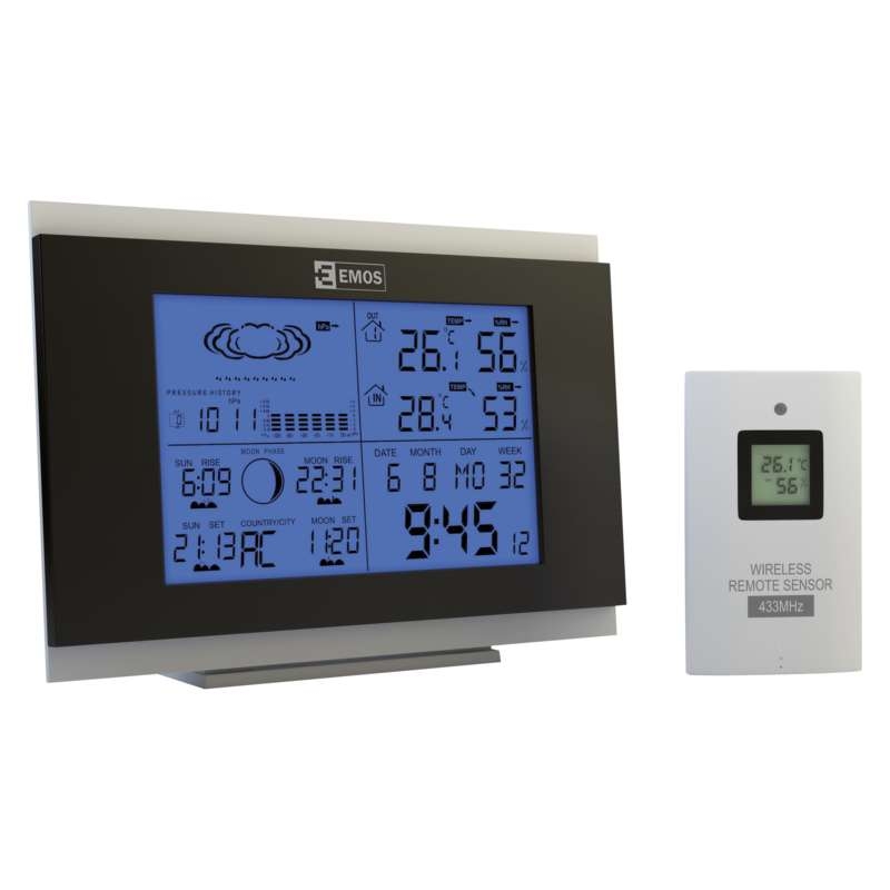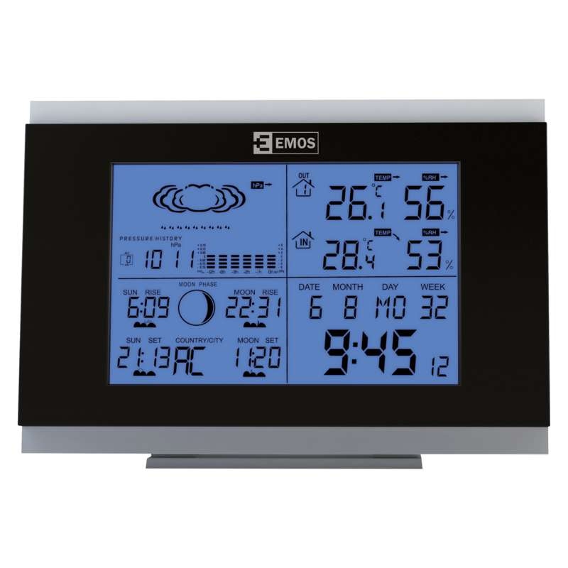 Vedeti, koliko je trenutno stopinj notri ali zunaj, in če bo čez par ur sijalo sonce ali deževalo, se zagotovo izplača. Ne pustite se presenetiti z vremenom in imejte na razpolago vse potrebne podatke z vremensko postajo EMOS. Zaradi osvetljenega zaslona boste imeli pregled nad tem, koliko je stopinj, obveščeni boste tudi o vlagi ali lunini fazi. Vremenska postaja vas razveseli s celo vrsto praktičnih dodatnih funkcij, med katere spadajo na primer ura, koledar ali budilka.