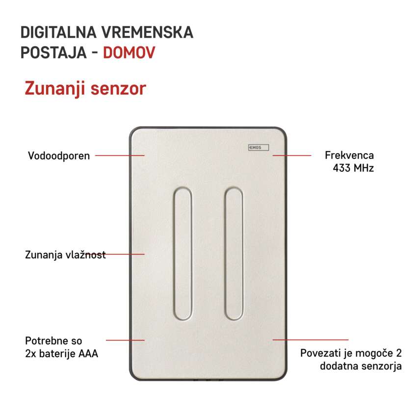 Vremenska postaja EMOS prikazuje ne samo trenutno temperaturo z ločljivostjo 0,1 °C, temveč nudi tudi zapis podatkov iz prejšnjih dni in zelo koristno vremensko napoved, po zaslugi katere boste vnaprej znali, ali je smiselno zalivati vrt ali iti na sprehod. Kar se trenutne notranje temperature tiče, jo meri v območju od -10 °C vse do +50 °C. V primeru zunanje temperature gre za območje od -50 °C vse do +70 °C. Vremenska postaja zapisuje tudi izmerjene najvišje in najnižje vrednosti ter omogoča nastavitev enote temperature s °C na °F.