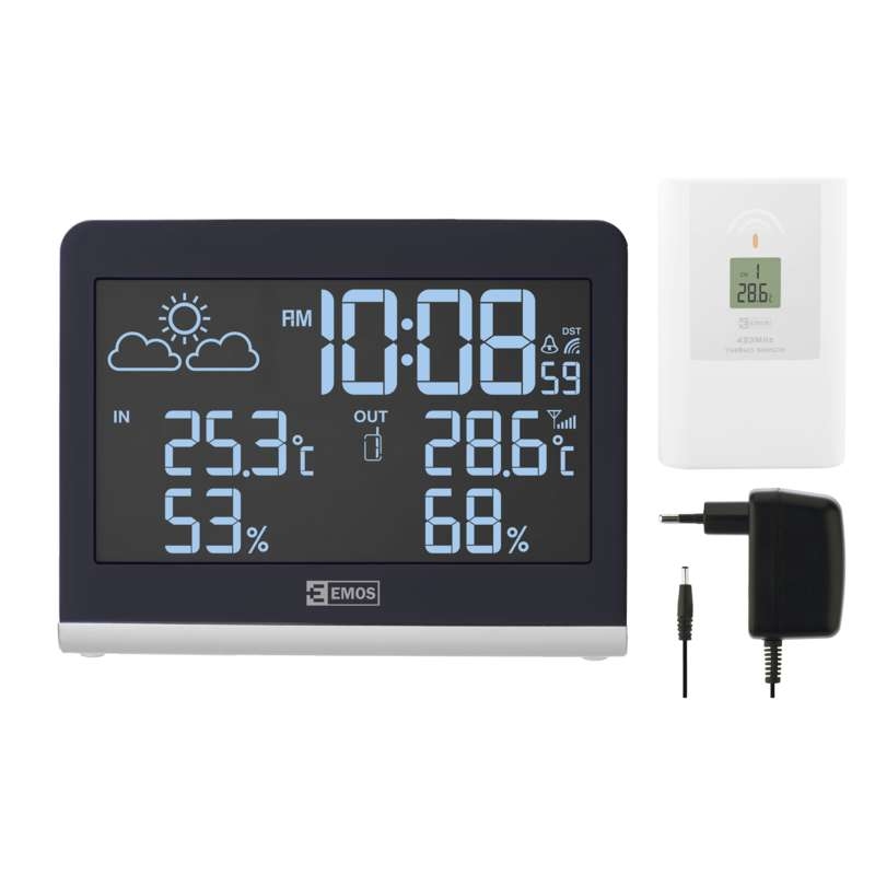Želite imeti nadzor nad tem, kakšno bo vreme v nekaj naslednjih urah? Dnevne aktivnosti vam bo pomagala načrtovati brezžična vremenska postaja EMOS, po zaslugi katere boste vedno vedeli, ali bo sijalo sonce, ali bo deževalo. Zagotovi vam tudi koristne informacije o notranji in zunanji temperaturi ter vlagi, na preglednem zaslonu VA pa prikaže najvišjo in najnižjo temperaturo in trenutni čas.