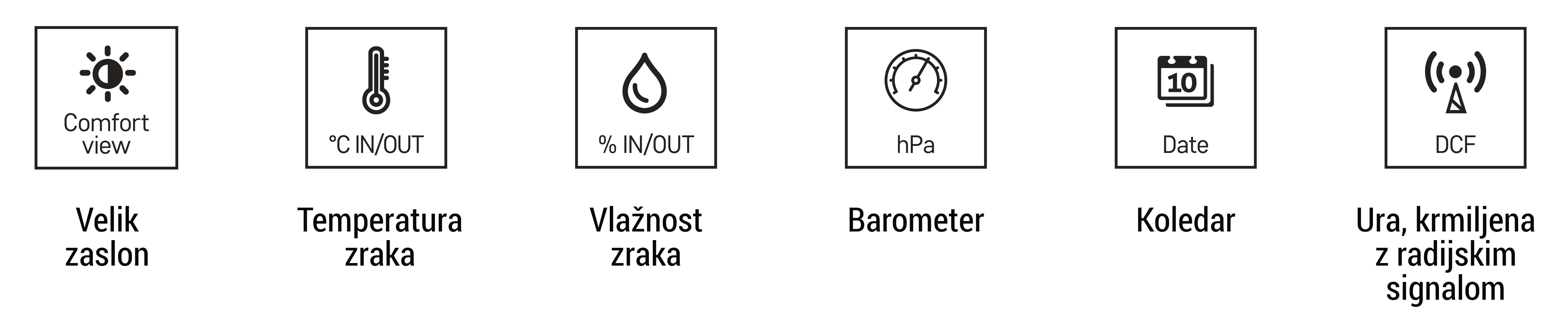 Zunanji senzorji, ki se napajajo z 2× baterijami AAA, so lahko po potrebi nameščeni tako v zaprtih prostorih kot na prostem. V paketu je vključen 1 zunanji senzor. Vremenska postaja meri notranjo temperaturo od 0 °C do +50 °C in zunanjo temperaturo od -40 °C do +70 °C z ločljivostjo 0,1 °C. Vremenska postaja vključuje tudi kazalnik napolnjenosti baterije senzorja, ki vas opozori, ko je treba zamenjati baterije senzorja.