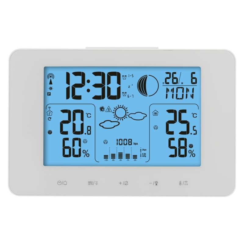 Če iščete vremensko postajo z velikim in preglednim zaslonom, po zaslugi katere boste imeli pregled nad vremenom, ste jo ravnokar našli v vremenski postaji EMOS. Po njeni zaslugi boste vedno obveščeni o tem, koliko stopinj je pri vas doma in koliko zunaj, pa tudi kakšna je trenutna notranja in zunanja vlažnost. Ne manjka niti funkcija vremenska napoved in prikaz časa, datuma ter koledarja.