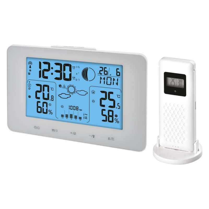 Zaslon vremenske postaje prikazuje trenutno notranjo temperaturo v razponu od 0 °C do 50 °C in zunanjo temperaturo od -20 °C do 60 °C, z ločljivostjo 0,1 °C. To temperaturo lahko primerjate z najvišjo in najnižjo temperaturo, ki jo je vremenska postaja v zadnjih dneh zabeležila. Med druge informacije o vremenu, ki jih vremenska postaja posreduje, spada zunanja in notranja vlažnost, trend razvoja tlaka, trend temperature in lunine faze. Sestavni del je tudi barometer in vremenska napoved, po zaslugi katere boste vedeli, kakšno vreme v naslednjih nekaj urah lahko pričakujete.