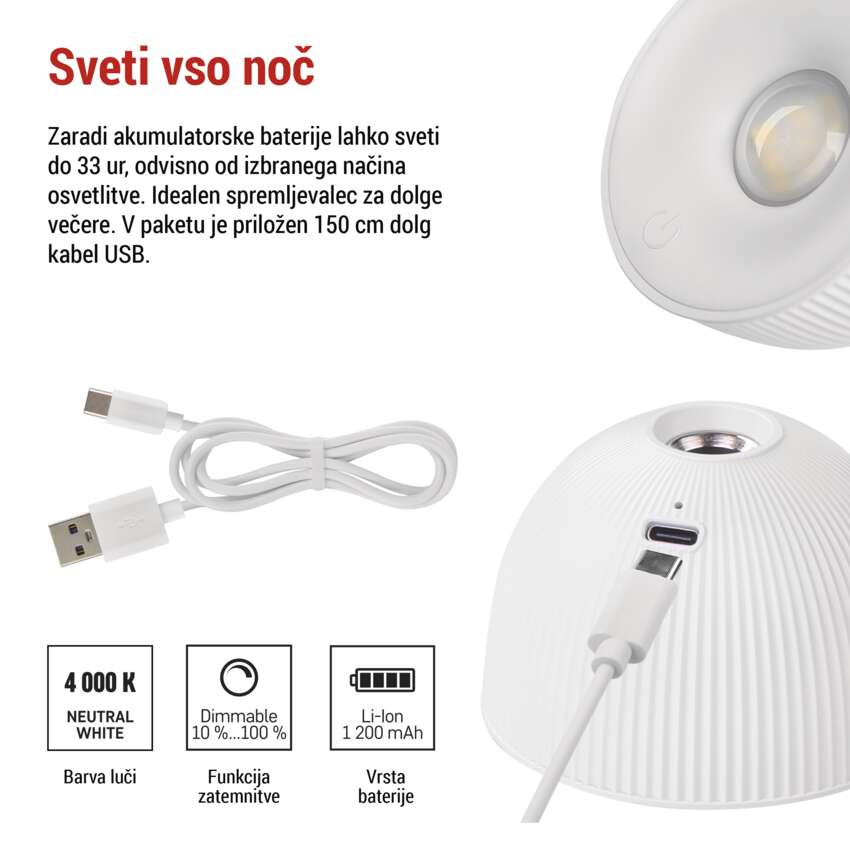 Namizna LED svetilka SOPHIE, polnilna, bela