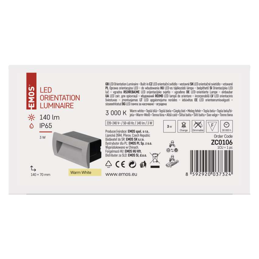 Powered by Smartsupp Orientacijsko LED svetilo DIRAL, vgradno, kvadratno, 3W, IP65, toplo bela | EMOS - Slovenija