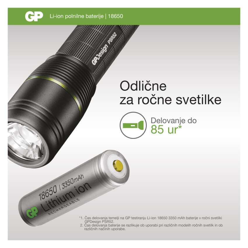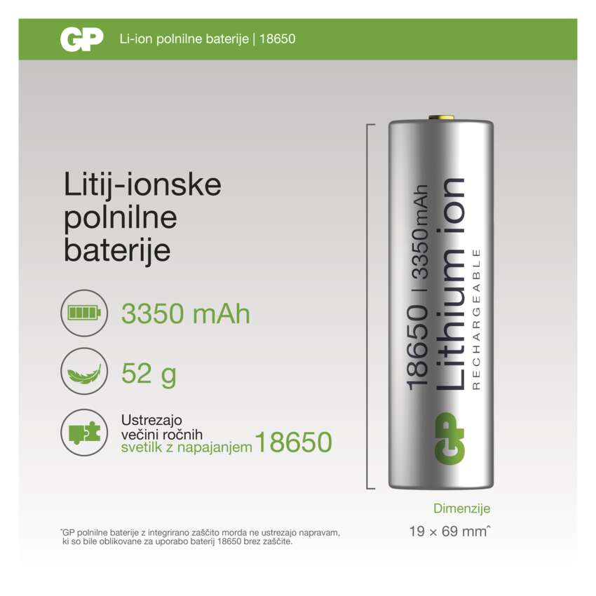 Polnilna baterija GP Lithium-ion 18650 3350 mAh PCM