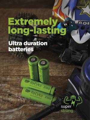 Baterija GP ReCyko se ponaša z izjemno dolgo življenjsko dobo baterije. Je ena od baterij z najvišjo komercialno dostopno zmogljivostjo na trgu. In ker vas ne bodo pustile na cedilu niti pri preveliki obremenitvi, jih boste vzljubili pri najrazličnejših dejavnostih.