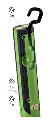 Svetilka EMOS P4535 je opremljena s kljuko za obešenje in 4 praktičnimi magneti. V trenutku pa jo namestite na katerokoli kovinsko površino. To pride prav na primer takrat, ko se potrebujete osredotočiti na delo in nimate časa iskati primerno mesto, kjer svetilko postaviti.