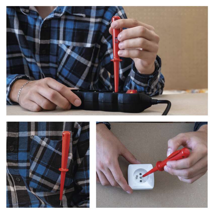 Načrtovan je za zaznavanje napetosti AC v območju 200-250 V in napetosti DC v območju 0-250 V. Zanesljivo zaznava fazo za natančno merjenje in se napaja iz vira napetosti, kar zagotavlja neprekinjeno delovanje brez potrebe po zamenjavi baterij. Praktična sponka omogoča enostavno pritrditev in prenašanje.