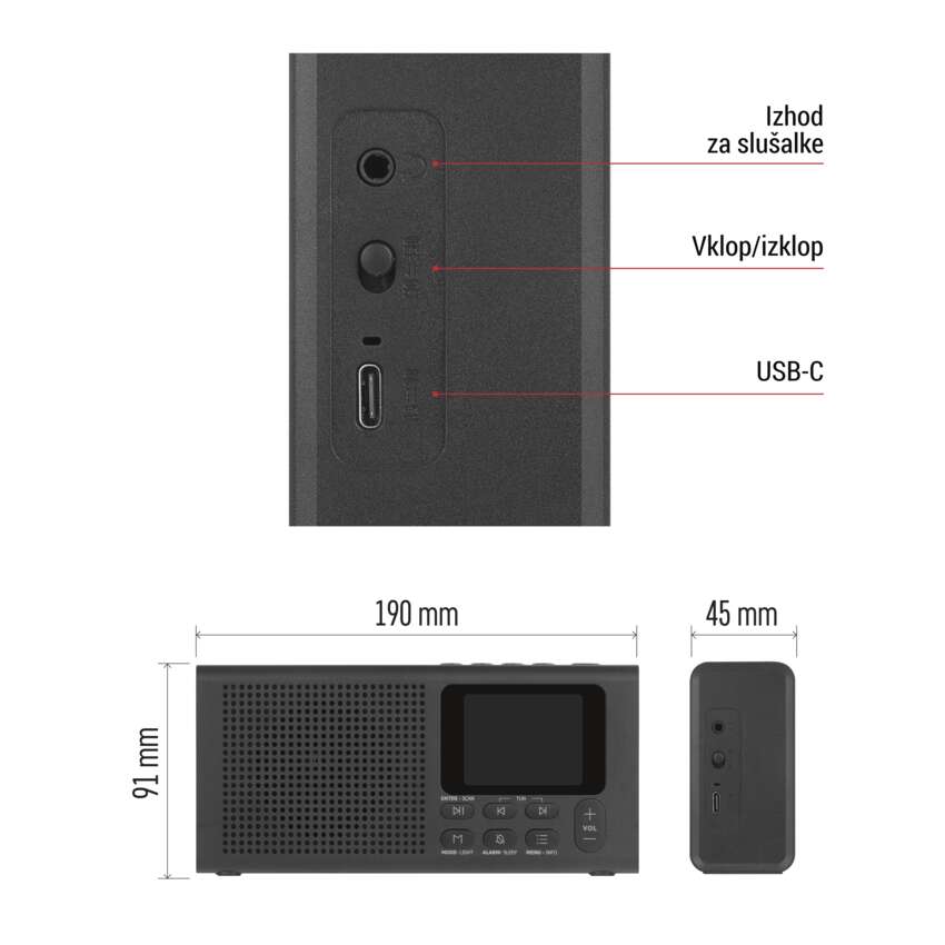 S občutljivim sprejemnikom lahko postaje uglasite tudi na oddaljenih območjih, zaradi kompaktne zasnove pa lahko radio vzamete s seboj kamor koli.