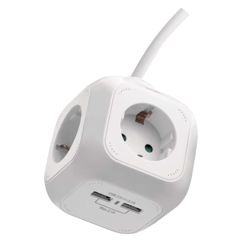 Razdelilec in podaljšek, kocka, 4 vtič., 2 USB, 1,9 m,schuko