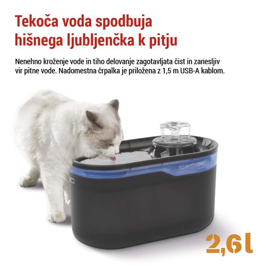 Črpalka je primerna za vodno fontano PET-201 (H6101). Paket vsebuje nadomestno črpalko vključno z 1,5 m kablom USB-A in filtrom črpalke. Delovanje črpalke je zelo tiho in zagotavlja redno kroženje vode.