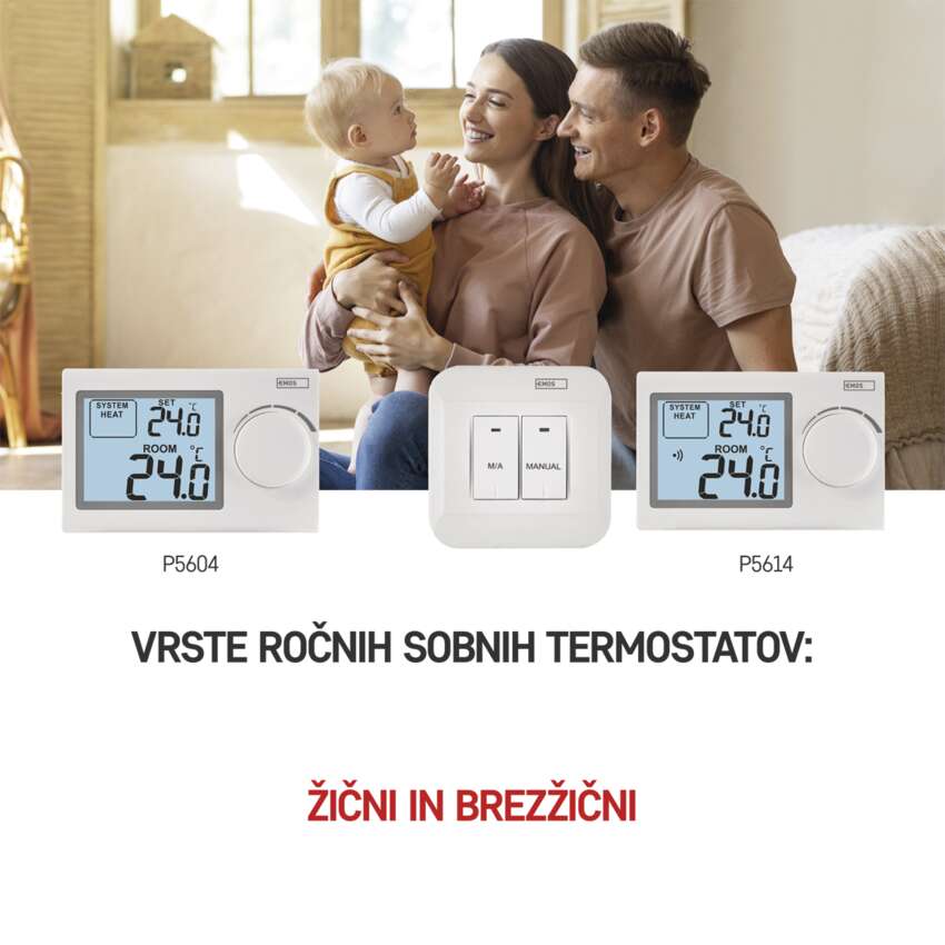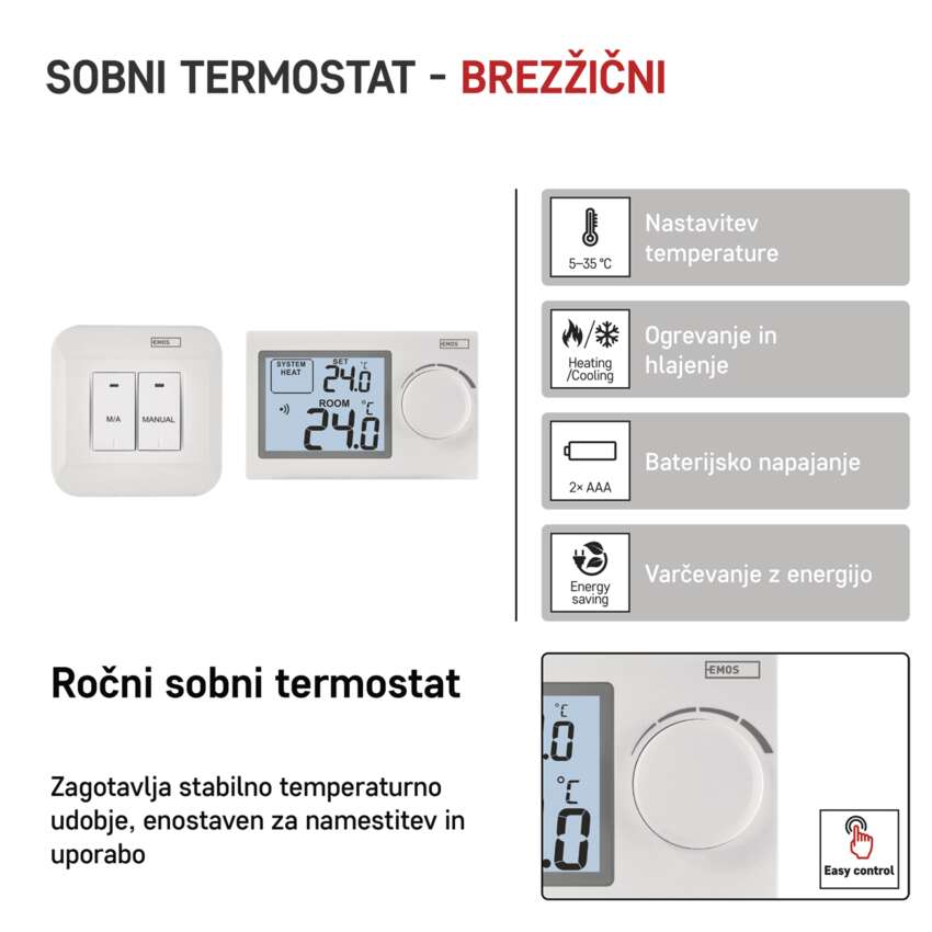 Ročni brezžični termostat lahko priključite na ogrevalni sistem in klimatsko napravo. Pozimi termostat ohranja optimalno temperaturo in ne prihaja do dragega in nezdravega prekomernega ogrevanja. V vročih poletnih dneh termostat poskrbi za hlajenje brez neprijetnih toplotnih šokov. Privoščite si občutek popolnega udobja skozi vse leto.