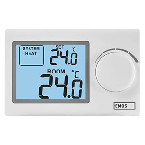 Odkrijte stabilno toplotno udobje gospodinjstva brez dragega prekomernega ogrevanja. Nič več nihanj, samo še prijetna temperatura brez skrbi. Žični sobni termostat z ročno nastavitvijo nadzoruje idealno temperaturo in uravnava ogrevalni sistem in klimatsko napravo podnevi in ponoči. Razpon nastavitve temperature od 5 °C do 35 °C zagotavlja prijetno temperaturo poleti in pozimi. Prednost je enostavno upravljanje in pregleden osvetljen zaslon z velikimi številkami ter podatki o trenutni in želeni temperaturi. Pozabite tekanje h kotlu, zadostuje zavreti z gumbom.
