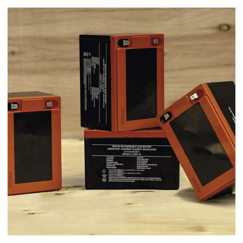 Vlečno svinčeno-kislinsko baterijo EMOS v AGM izvedbi, ki ne potrebuje vzdrževanja in je krmiljena z ventili, je mogoče namestiti v katerem koli položaju.