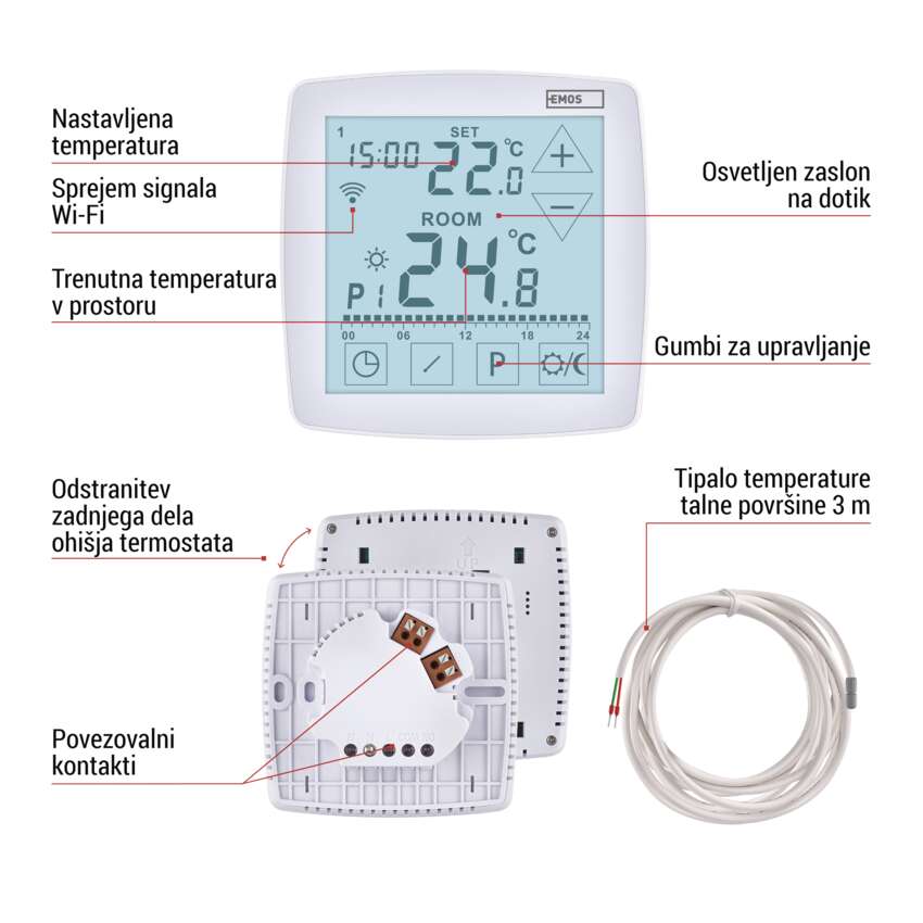 | tip upravljanja | programski elektronski sobni termostat, možnost upravljanja preko mobilnega telefona (iOS, Android) |