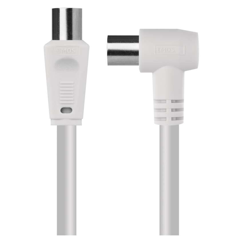 Antenski koaksialni kabel z vtikačem in vtičnico IEC. Kabel ima kotni priključek (90°). Kabel je dvakrat zaslonjen za zmanjševanje elektromagnetnih motenj. Dolžina kabla je 10 m.Koaksialni kabel je primeren za SAT, DVB-T, ANT, DECODER, FLAT TV in TV.