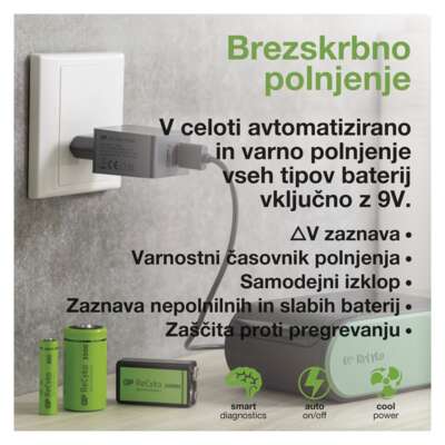 Ne želite vedno znova kupovati novih baterij? Bi radi prihranili čas in denar? Rešitev je Univerzalni polnilec baterij B631, ki je nov izdelek podjetja GP Batteries. Polnilec obljublja hitrejše in natančnejše polnjenje kot njegovi predhodniki in polni do 6 baterij hkrati. Poleg tega lahko uporablja več vrst baterij (AA, AAA, C, D, 9 V). Zaradi številnih praktičnih funkcij se lahko zanesete na popolnoma brezhibno polnjenje, kar velja tudi za 9V baterije. Nenazadnje vas bodo prepričali njegov sodoben videz, nizka teža in kompaktne mere ter plastični pokrov, ki polnilec ščiti pred umazanijo. Polnilec lahko enostavno napolnite kjerkoli in kadarkoli zahvaljujoč mikro USB kablu, ki je priložen v paketu.