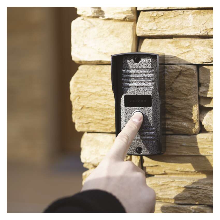 Zunanja enota s kamero je izdelana iz trpežnega materiala, zato je odporna na mehanske poškodbe in izredne vremenske razmere. Ima oznako zaščite IP44, kar pomeni, da je kamera vodoodporna.