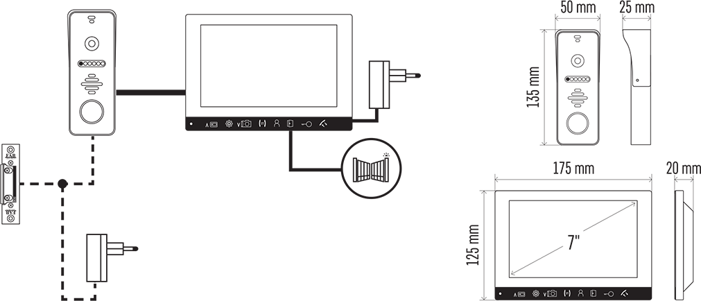 Imate radi popolne rešitve, ko gre za varovanje vašega doma? Potem vas bo video domofon EMOS EM-10AHD z vrhunsko sliko full HD povsem navdušil. Poleg odlično ostre in kakovostne slike podnevi in ponoči skupaj s širokim kotom snemanja kamere do 160°/120° vam model ponuja tudi možnost nadgradnje sistema z drugimi zunanjimi kamerami ali nadzornimi kamerami. Omogoča upravljanje ključavnic vrat in drsnih vrat ograje. Kamera je odporna na vremenske in mehanske vplive, zato vam ni treba skrbeti, kam bi jo namestili, da bo ustrezno zaščitena.