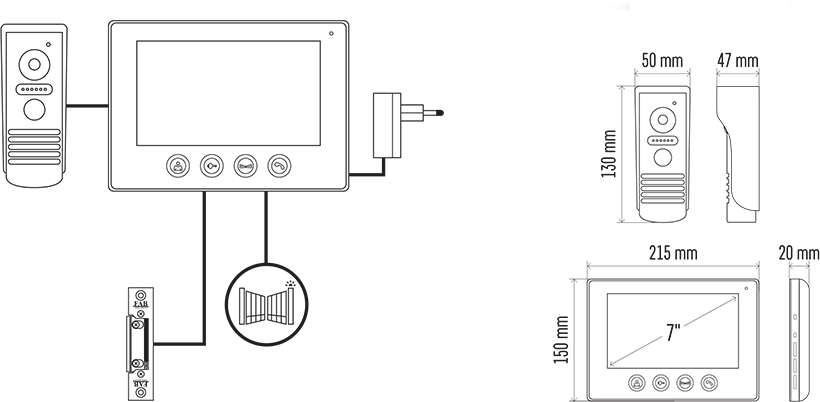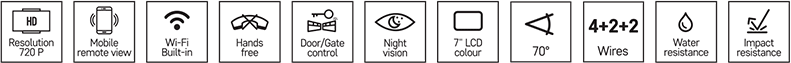 Pametni hišni videotelefon IP-700A z vgrajenim mikrofonom, zvočnikom in kamero vam omogoča dvosmerno komunikacijo z dohodnim klicateljem prek notranjega monitorja LCD ali mobilnega telefona. V primeru odsotnosti lahko klicočega dostavljalca preusmerite k sosedu ali ga prosite, naj počaka do vašega zgodnjega prihoda. Prav tako lahko posnamete kratko sporočilo, ki se bo samodejno predvajalo ob zvonjenju na vratih.