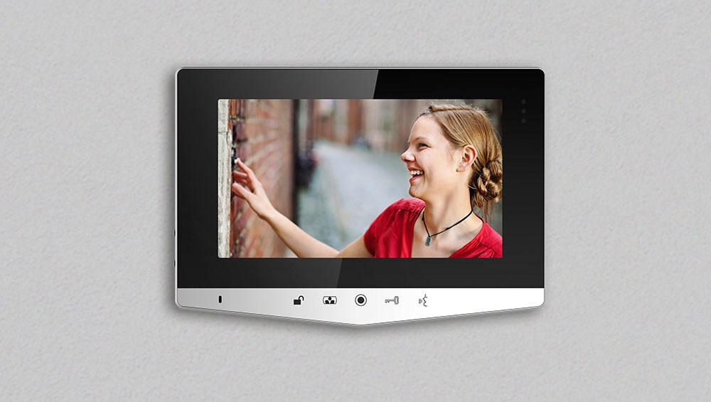 Ta tanek 7-palčni monitor (144 × 204 × 26,5 mm) bo primeren za vašo predsobo, predsobo, dnevno sobo in kuhinjo. Brez težav ga lahko pritrdite na steno s priloženim okvirjem in 4 majhnimi vijaki. Za vse bistvene stvari poskrbi 5 gumbov na dotik pod zaslonom. Z njimi lahko vidite obiskovalca, se z njim pogovarjate, daleč odprete vrata in mobilna vrata ali uporabite interkom (lažja komunikacija z družinskimi člani prek 2 monitorjev v hiši). Upravljanje videotelefona H2030 je tako preprosto, da ga lahko otroci in starši upravljajo brez težav.