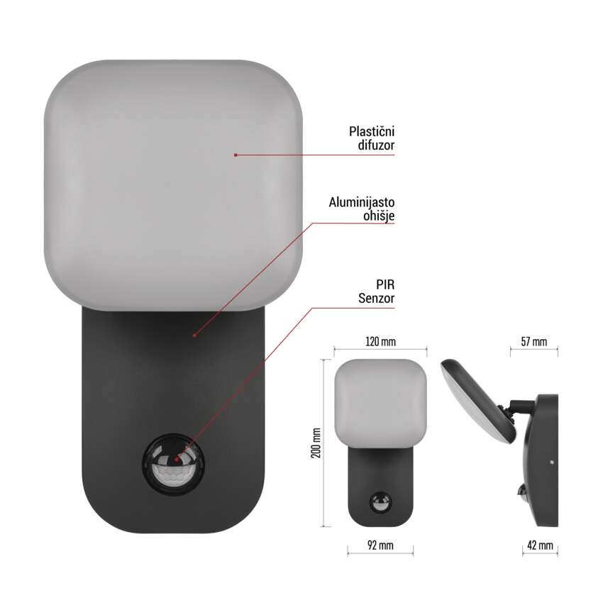 Vrtna LED stenska svetilka NIKA s PIR senzorjem, 12 x 12 x 20 cm, 12,8 W, toplo bela