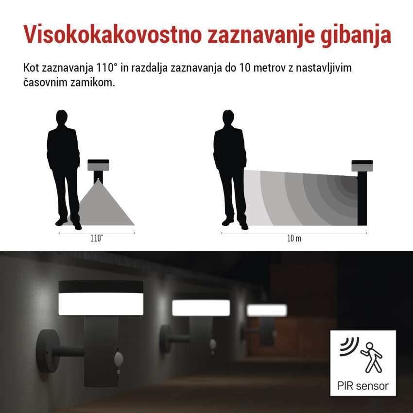 | Območje senzorja PIR | 10 m |