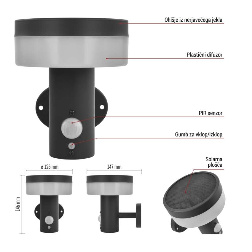 ✔ Napajanje na sončno energijo - brez kablov, nič stroškov delovanja