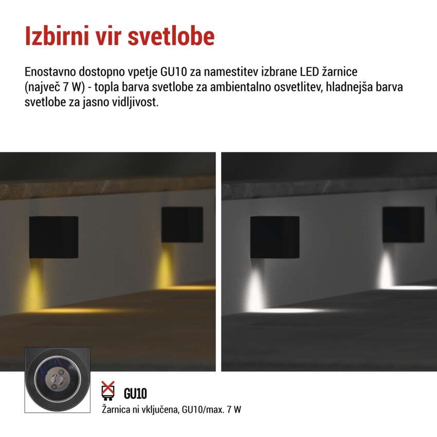 | vznožek (pritrditev žarnice) | GU10 |
