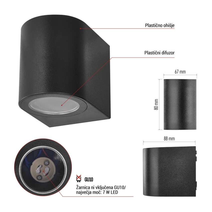 Vrtna stenska svetilka OCULUS, 8,8 x 6,7 x 8 cm, 1 x GU10, 1× 7W