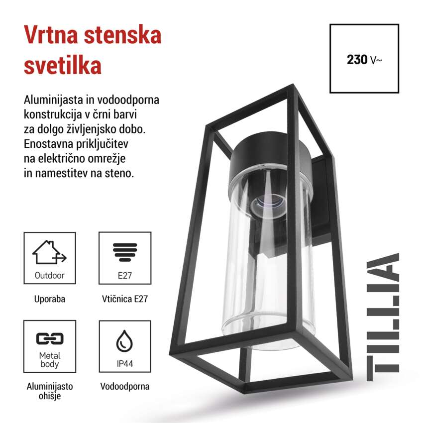 Vrtna svetilka TILLIA združuje elegantno obliko in visokokakovostno osvetlitev, zato je popoln dodatek za vsak zunanji prostor. Z natančno izdelavo in trpežnimi materiali zagotavljajo zanesljivo delovanje v vseh pogojih. Linija TILLIA ponuja eno svetlobo, ki je popolna za vsak slog vašega vrta.