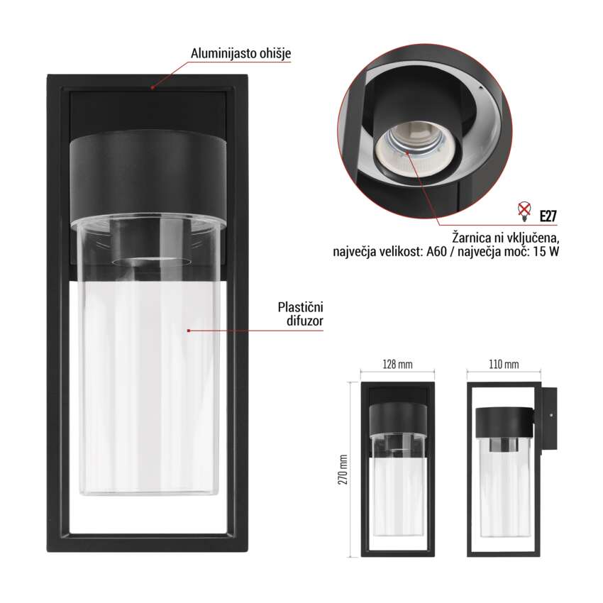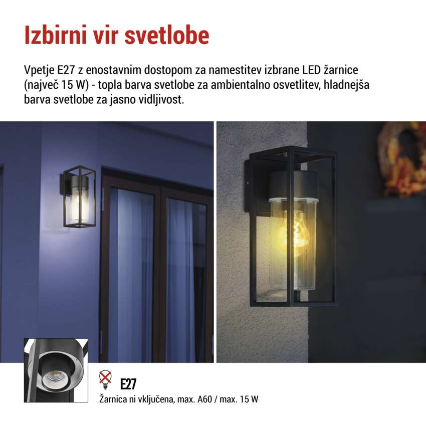 Vrtna stenska svetilka TILLIA, 12,8 x 11 x 27 cm, 1 x E27, 15 W