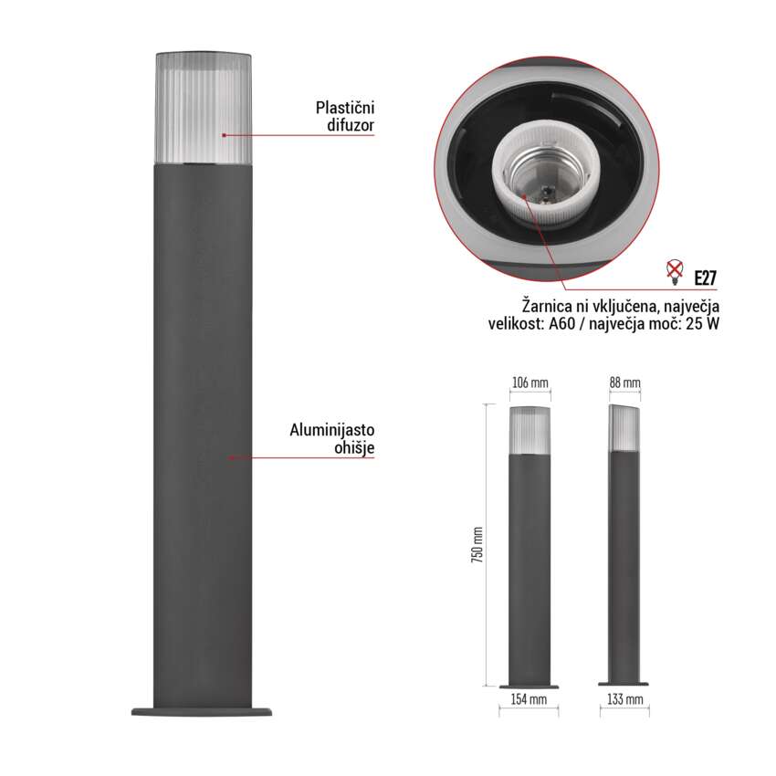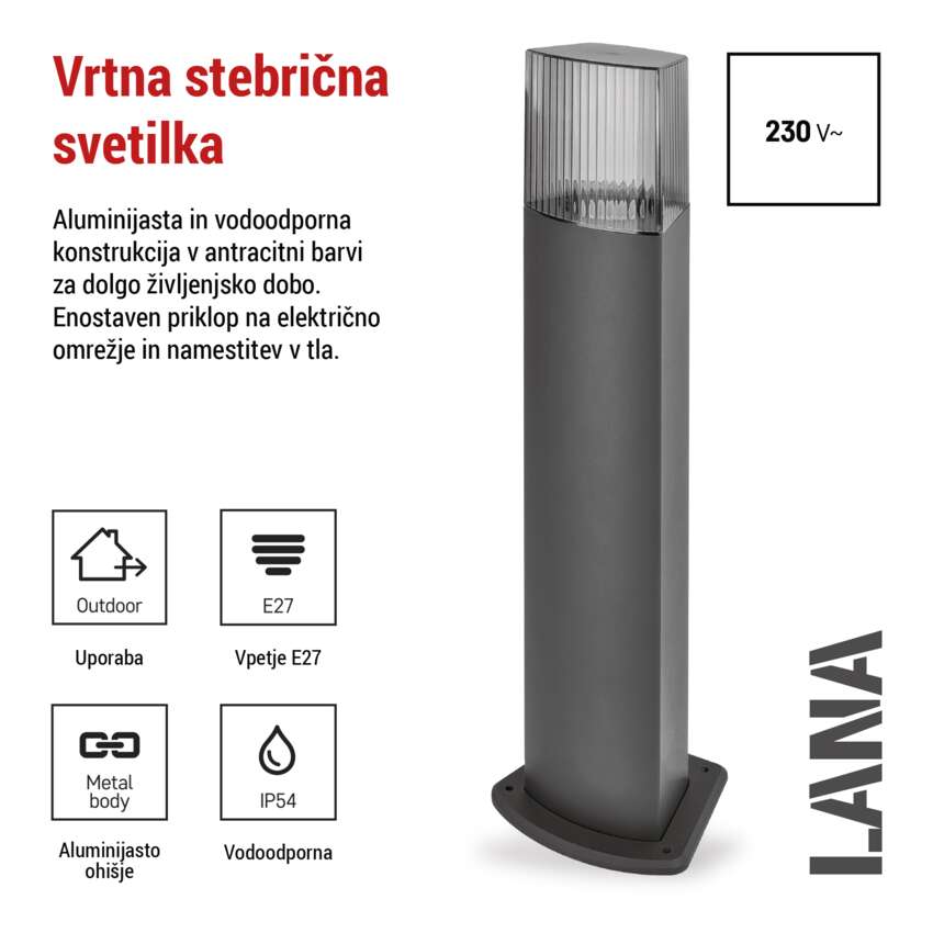 Vrtna stoječa svetilka LANA, 15,4 x 13,3 x 75 cm, 1 x E27, 25 W