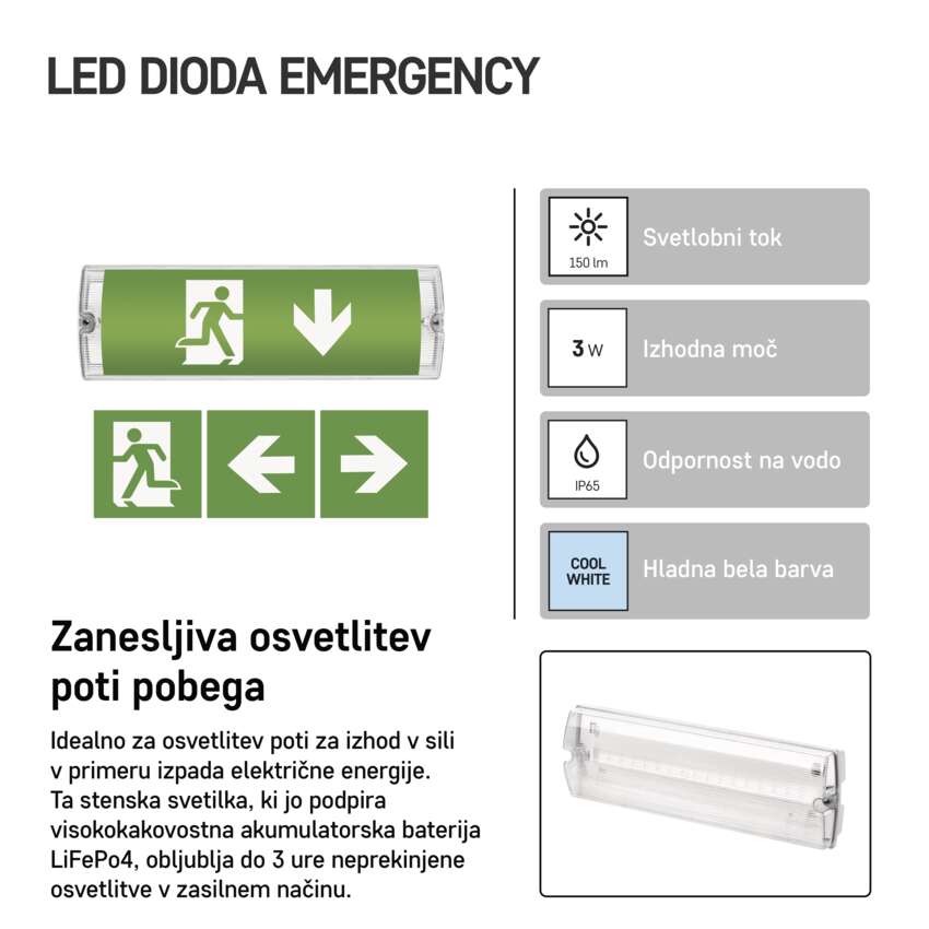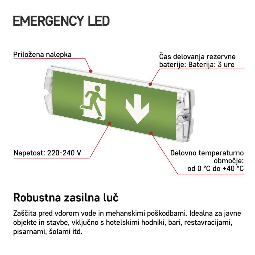| izhodna moč v zasilnem stanju | 3 W |