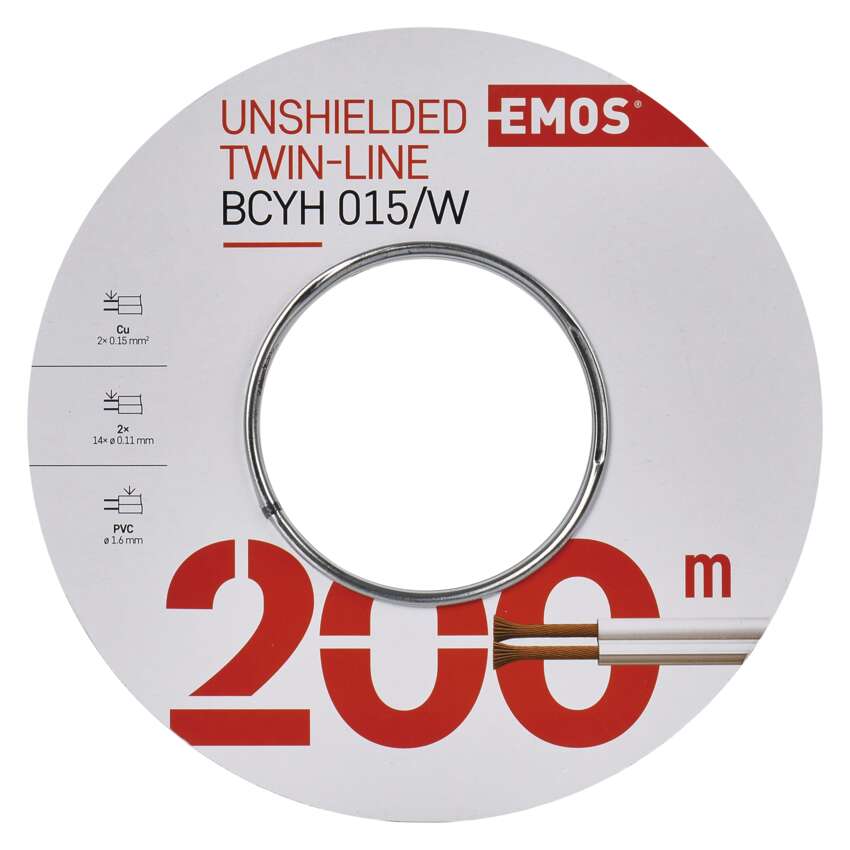 Nezaslonjena žica (vodnik) prereza 2 × 0,15 mm2. Žica je bele barve, plašč pa je iz PVC-ja.