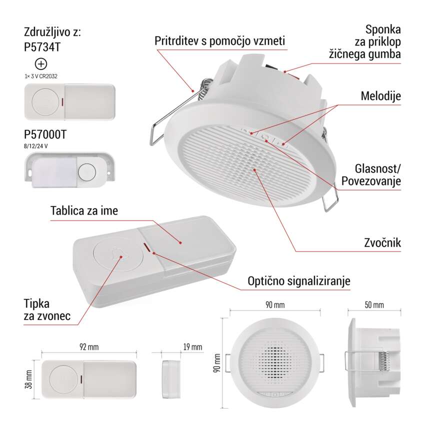 Žični/Brezžični hišni zvonec P57103, vgrajen