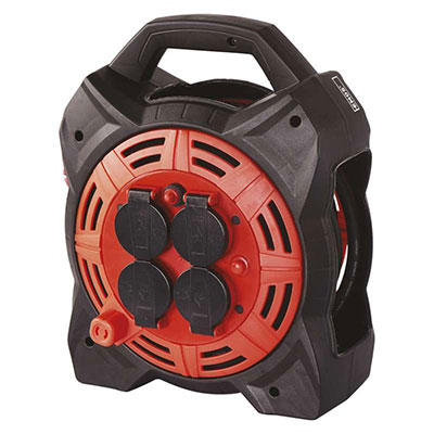 Zunanji kolutni podaljšek 15 m / 4 vtičnice / guma-neopren / 230V / 1,5 mm2 z reflektorjem